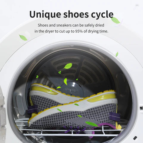Say goodbye to waiting days for your athletic shoes to air dry. Our unique shoe drying cycle revolutionizes footwear care by reducing drying time up to 95%. The specialized rack keeps shoes secure while the optimized airflow ensures even drying without damage. Perfect for active lifestyles, this innovative feature safely dries your favorite sneakers and athletic shoes while preserving their shape and integrity.