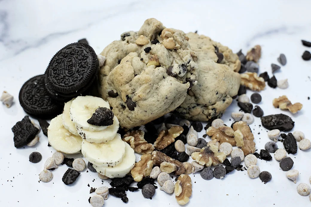 Get ready to go bananas for our Banana Cookie with Oreos, Walnut, Peanut Butter Chips, and Milk Chocolate Chip!
