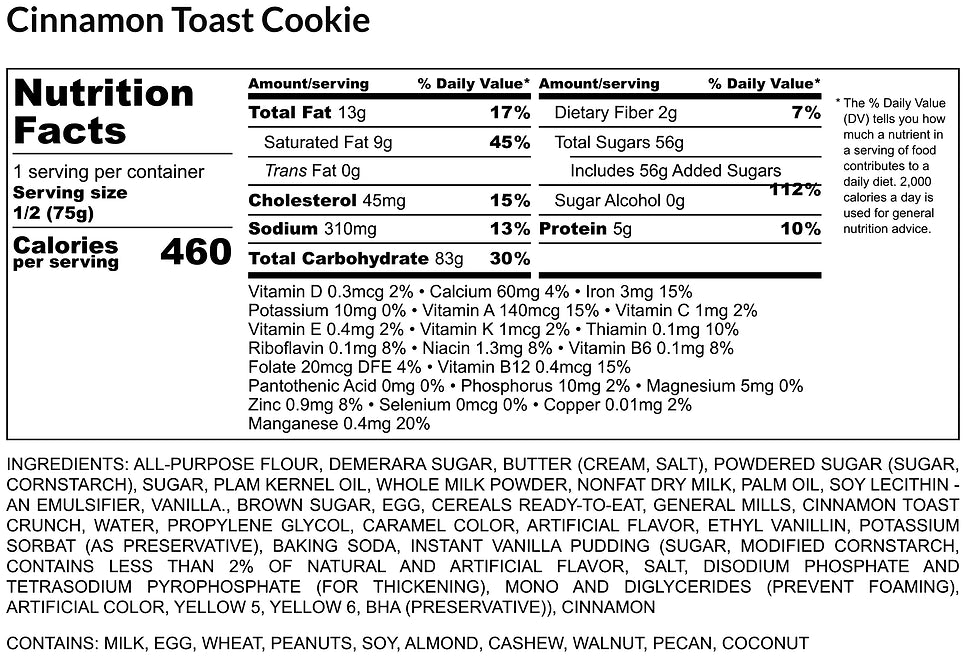 Get ready to indulge in the ultimate sweet treat with our cinnamon toast crunch cookies! Made with a perfect blend of cinnamon, sugar, and crispy cereal, these cookies are sure to satisfy your cravings. But we don't stop there - we've taken it to the next level with donut icing and creamy white chocolate chips, creating a flavor explosion that will leave you wanting more.