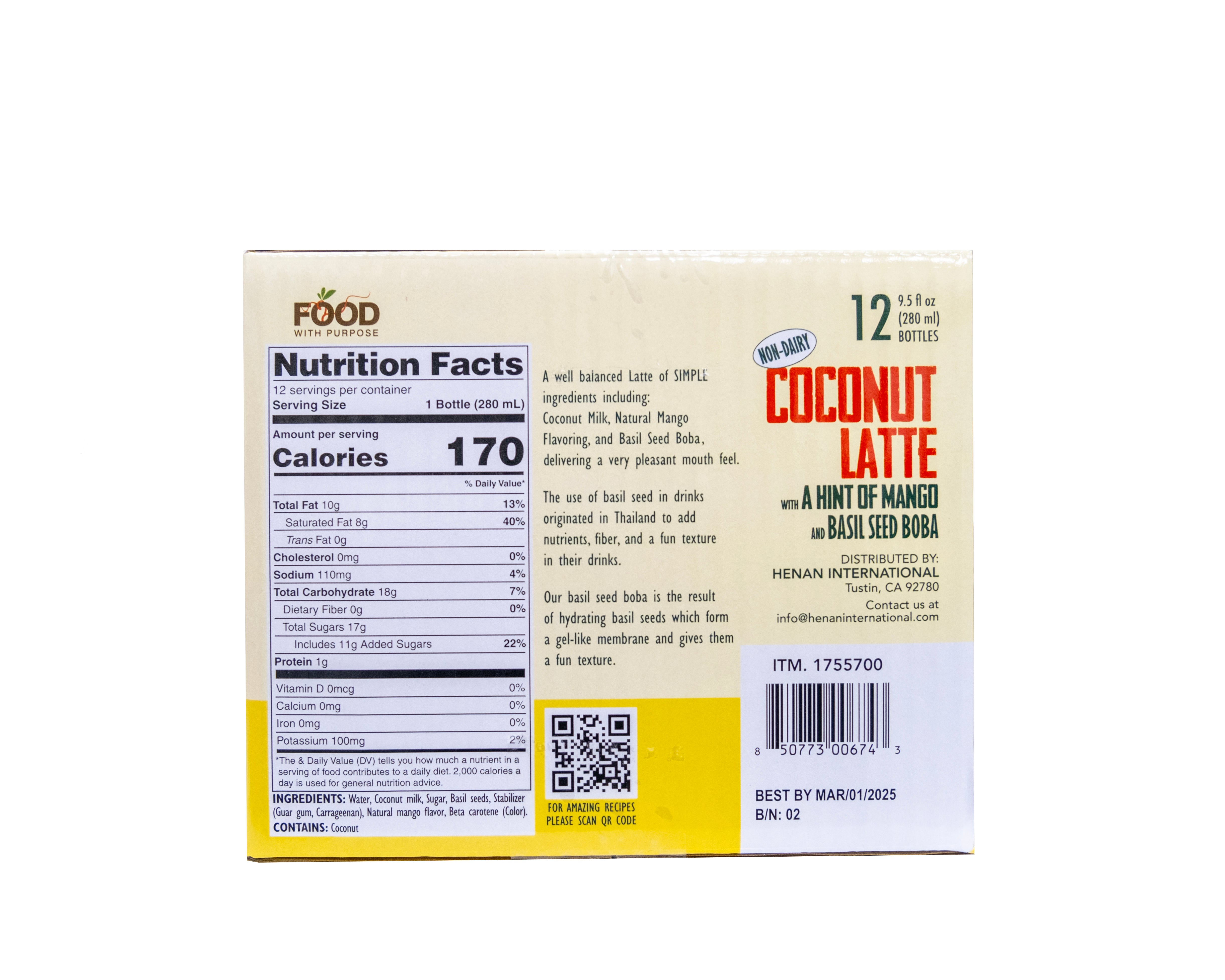 FOOD WITH PURPOSE COCONUT LATTE A well balanced latte of SIMPLE ingredients including coconut milk, natural mango flavoring, and basil... Read more