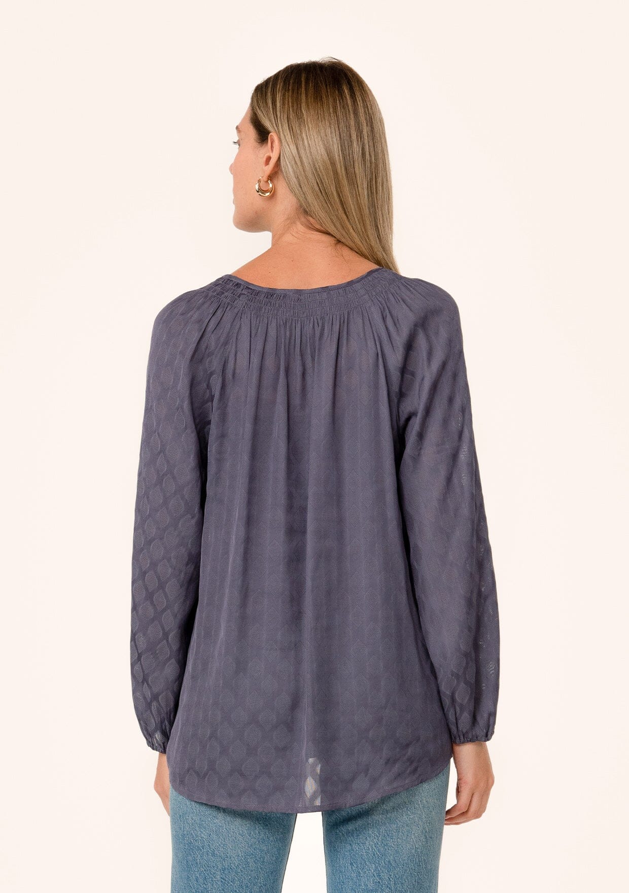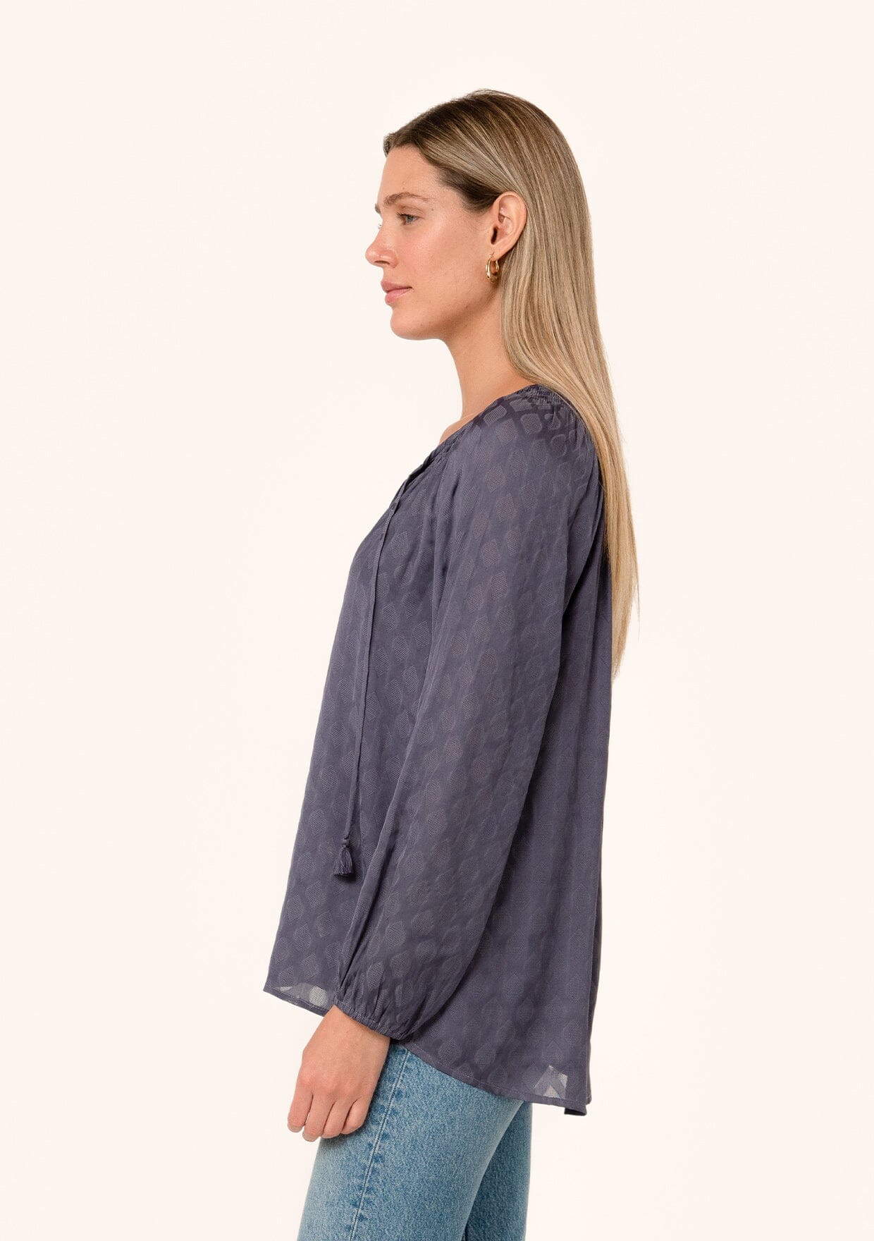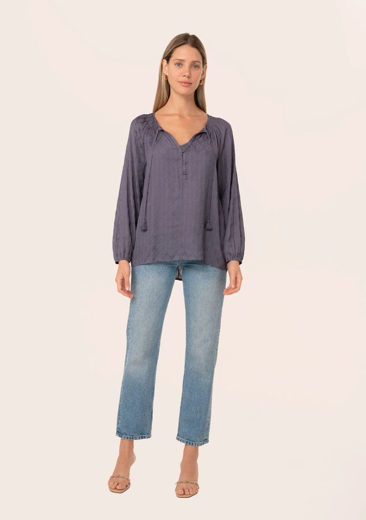 A classic dusty purple bohemian blouse designed in a silky diamond jacquard. Diamond jacquard Relaxed, flowy fit Voluminous long raglan... Read more