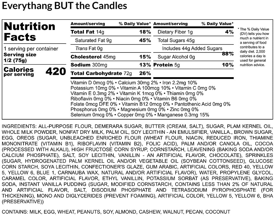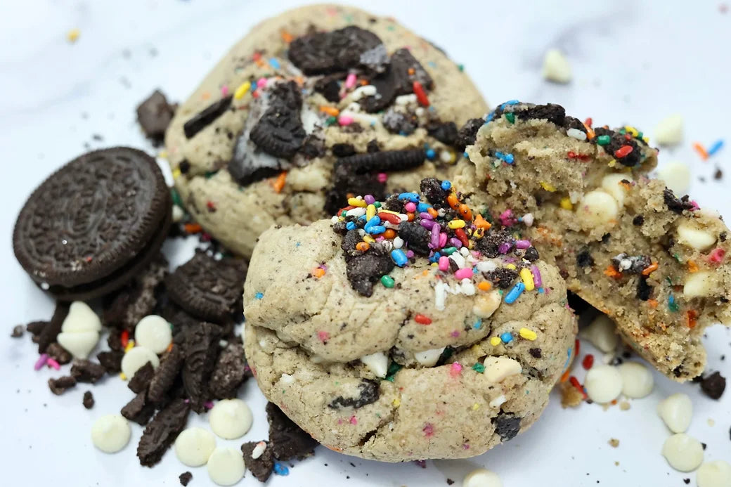 This delectable cookie is loaded with crunchy Oreos and white chocolate chips, all nestled in a soft and chewy Funfetti cookie base.
