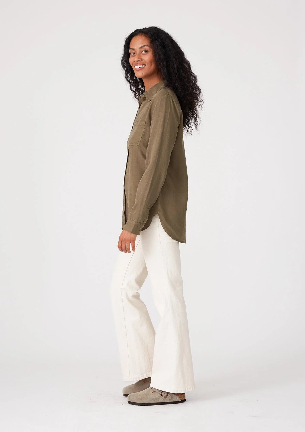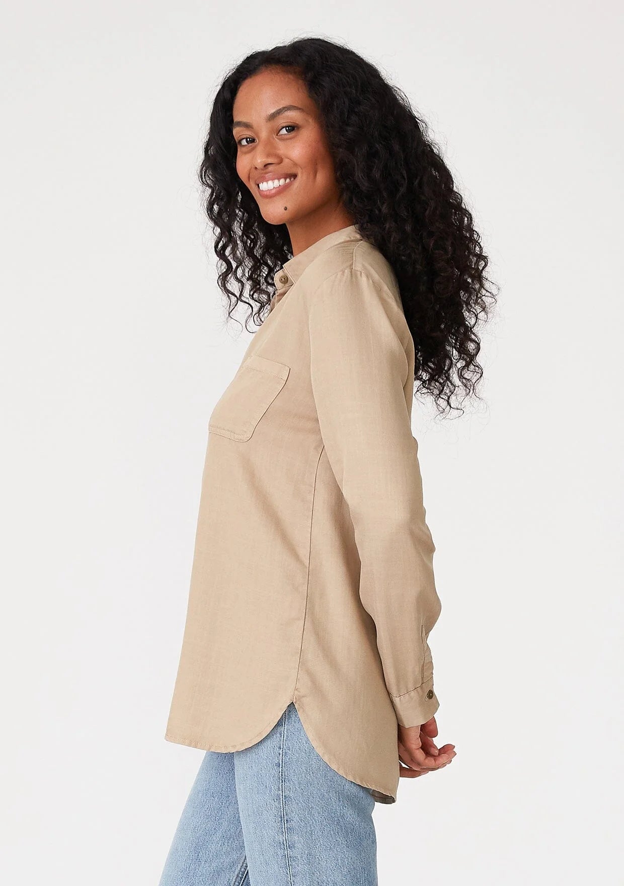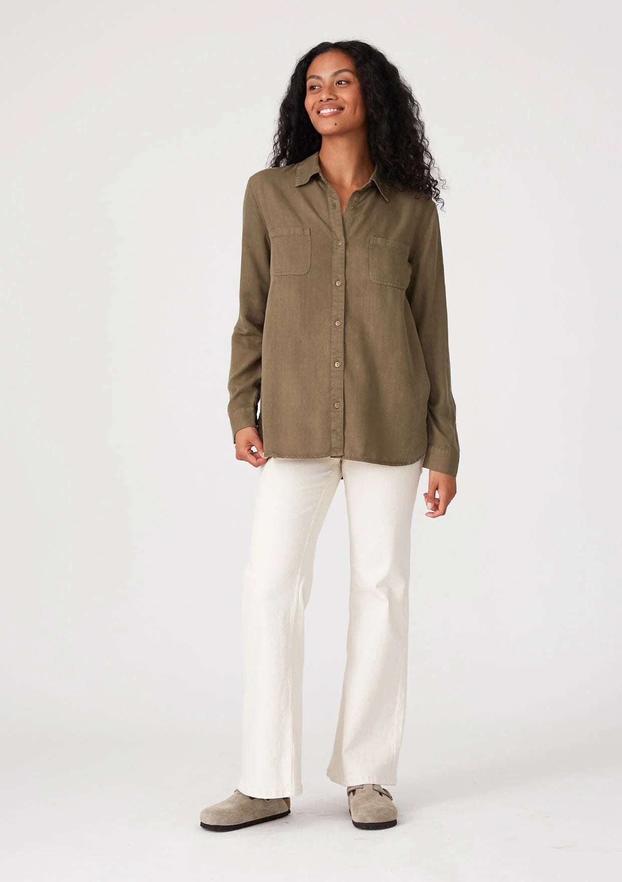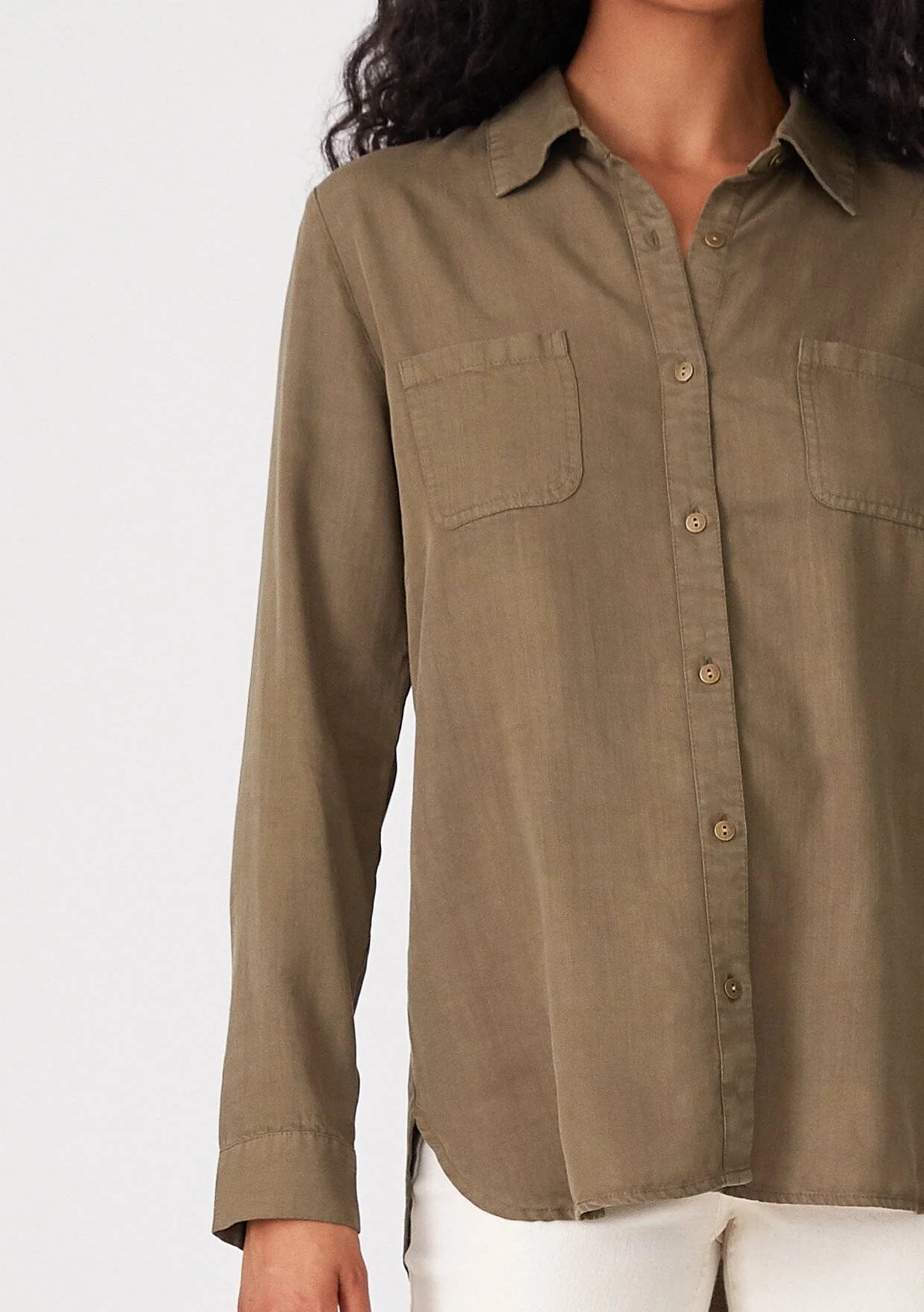A classic button-front shirt crafted from lightweight tencel. Tencel Relaxed fit Long sleeve Button wrist cuff Collared neckline Button front Front... Read more