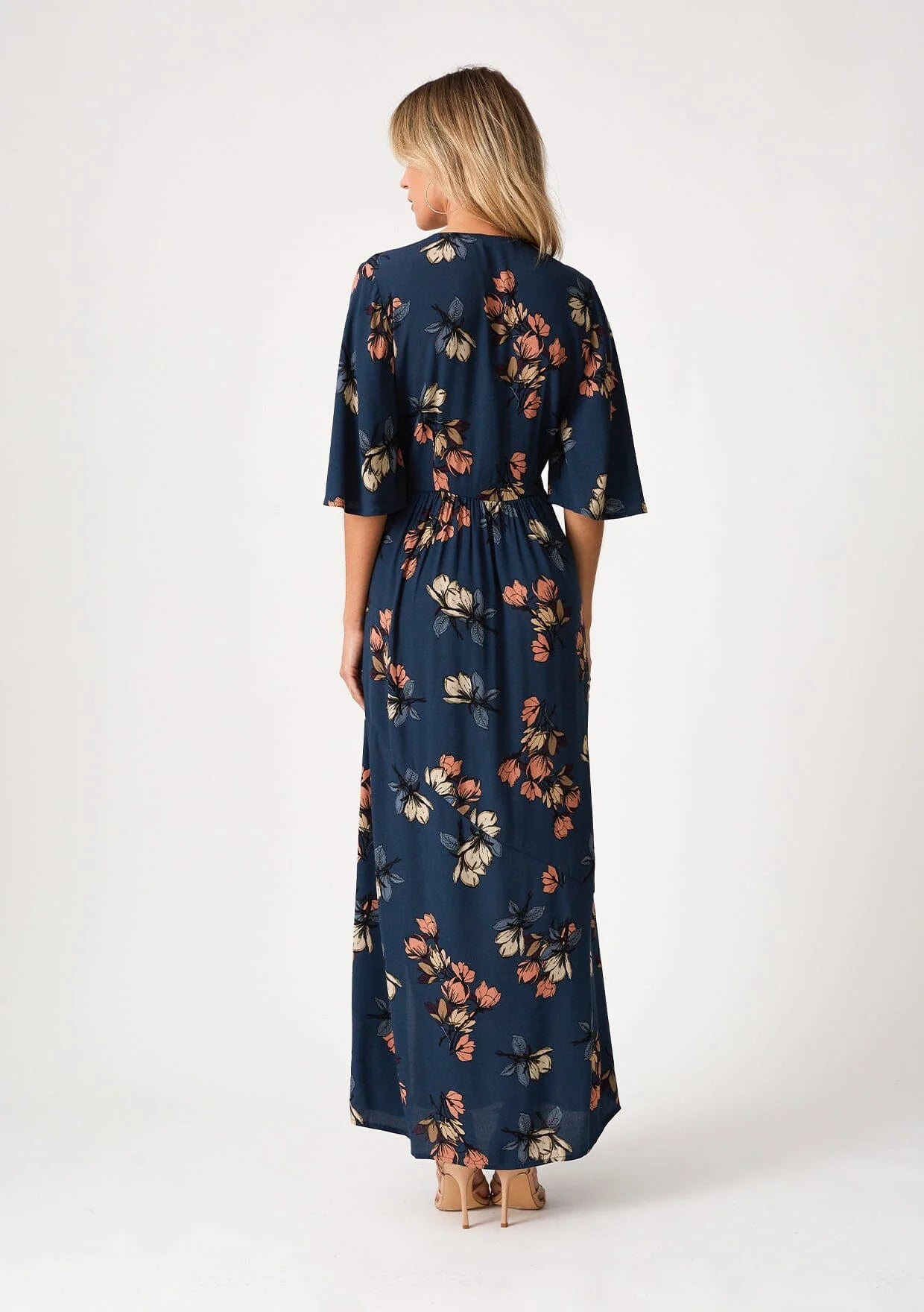 A classic bohemian fall maxi dress in a teal blue floral print. Floral print Relaxed fit Short sleeves Maxi length Tiered skirt... Read more