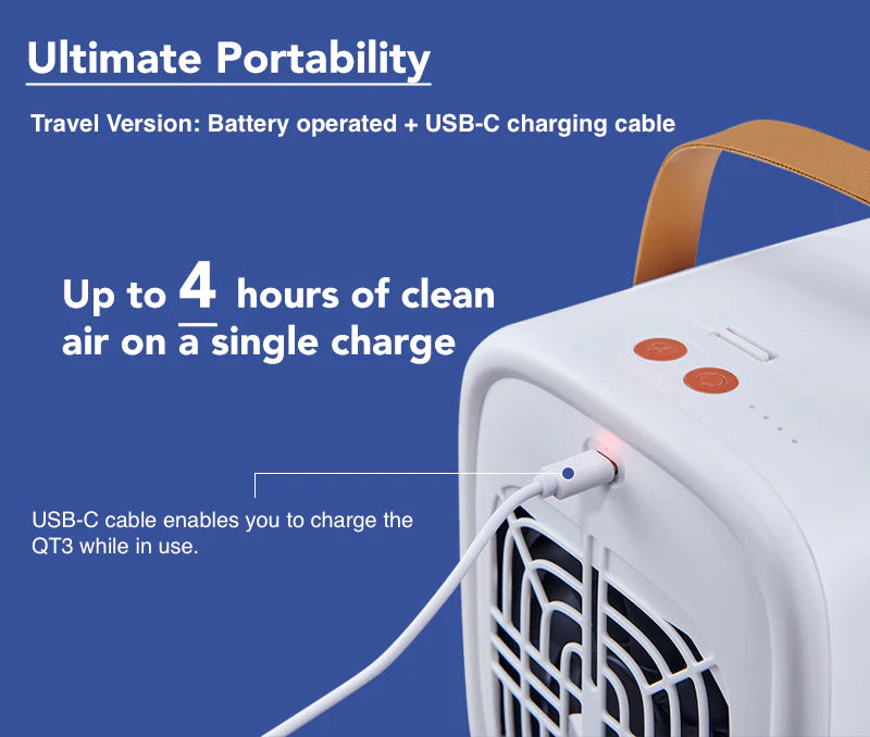 Silent Operation: Engineered for quiet performance, the QT3 allows you to breathe clean without disturbance, making it perfect for use in silent environments like offices or bedrooms.