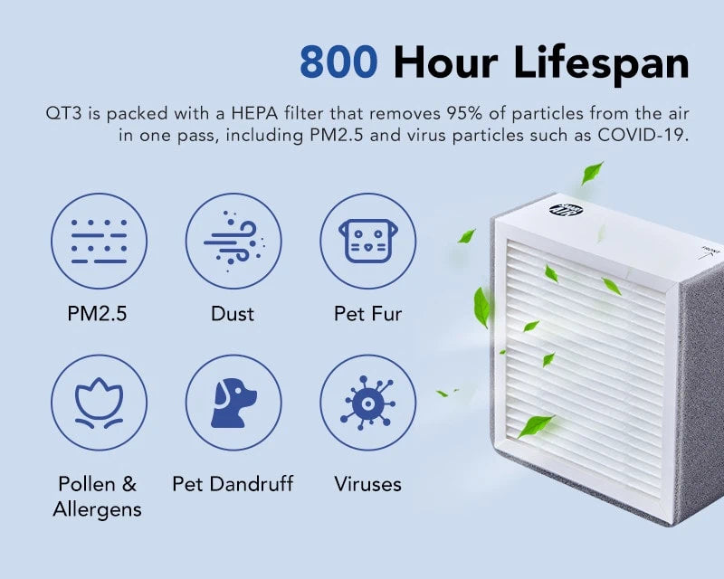 Durable Construction: Crafted with high-quality materials, the QT3 is durable and built to last, providing reliable air purification for the long term.