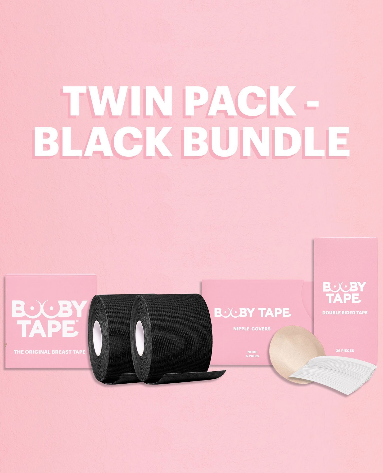 Two is a charm! Our Twin pack - Black Bundle includes: 2 Black Booby Tape Rolls - 5 metre rolls1 Nipple... Read more