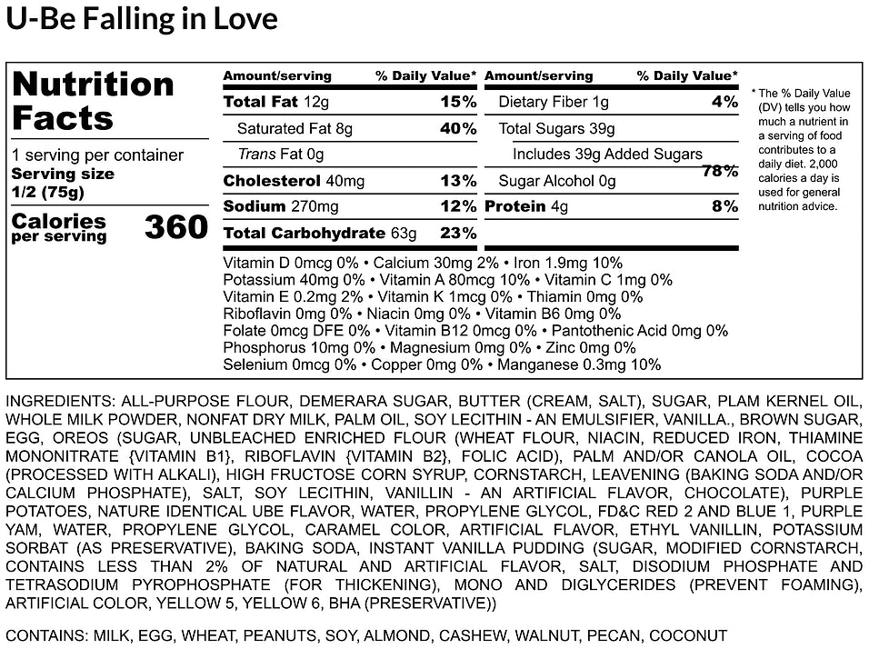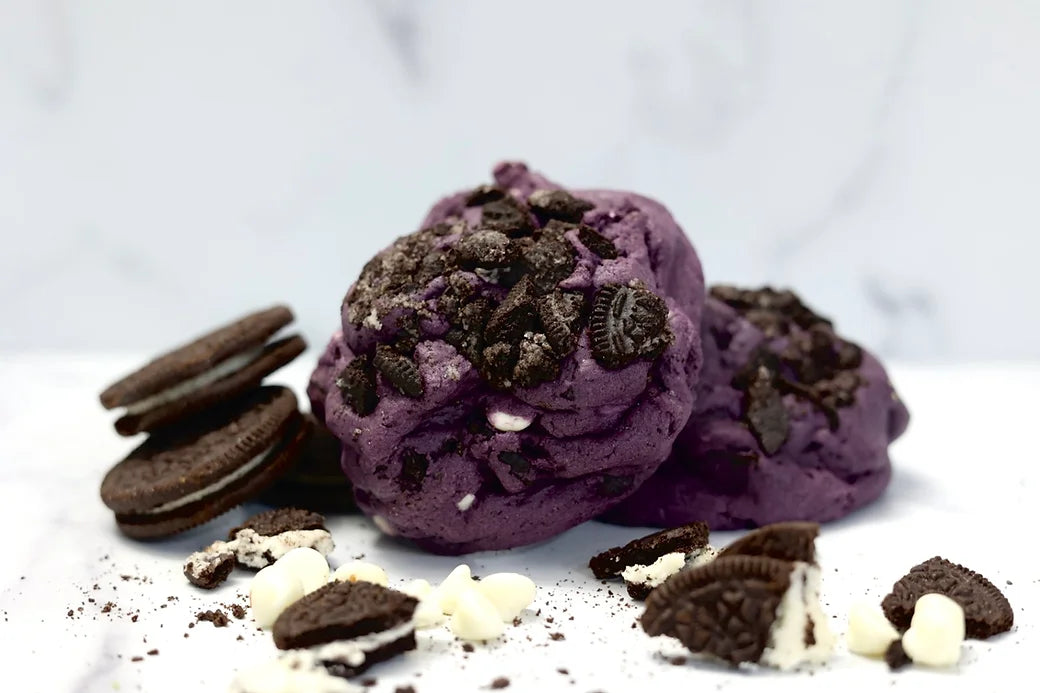 Our cookies are made with premium ube, a Filipino purple yam that's bursting with flavor, combined with crunchy Oreos and white chocolate chips for the perfect balance of sweetness and texture.