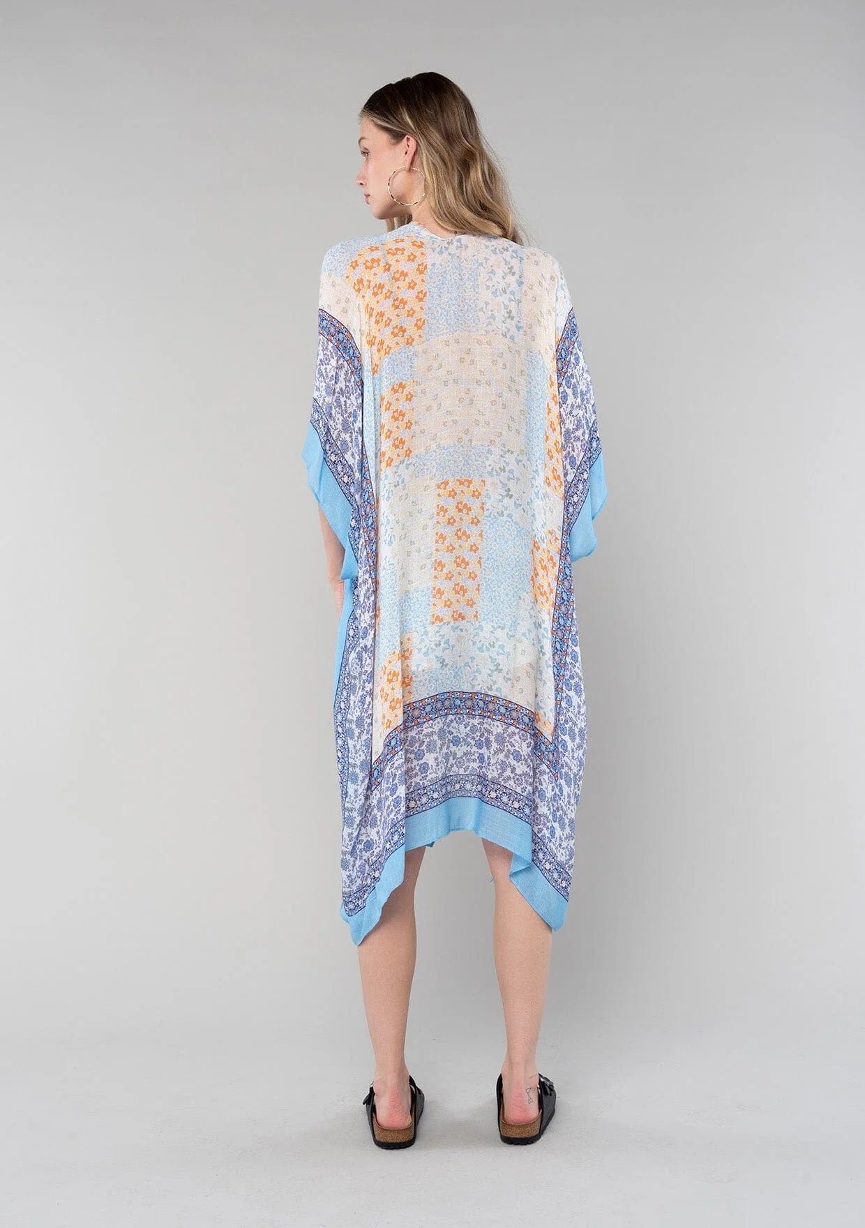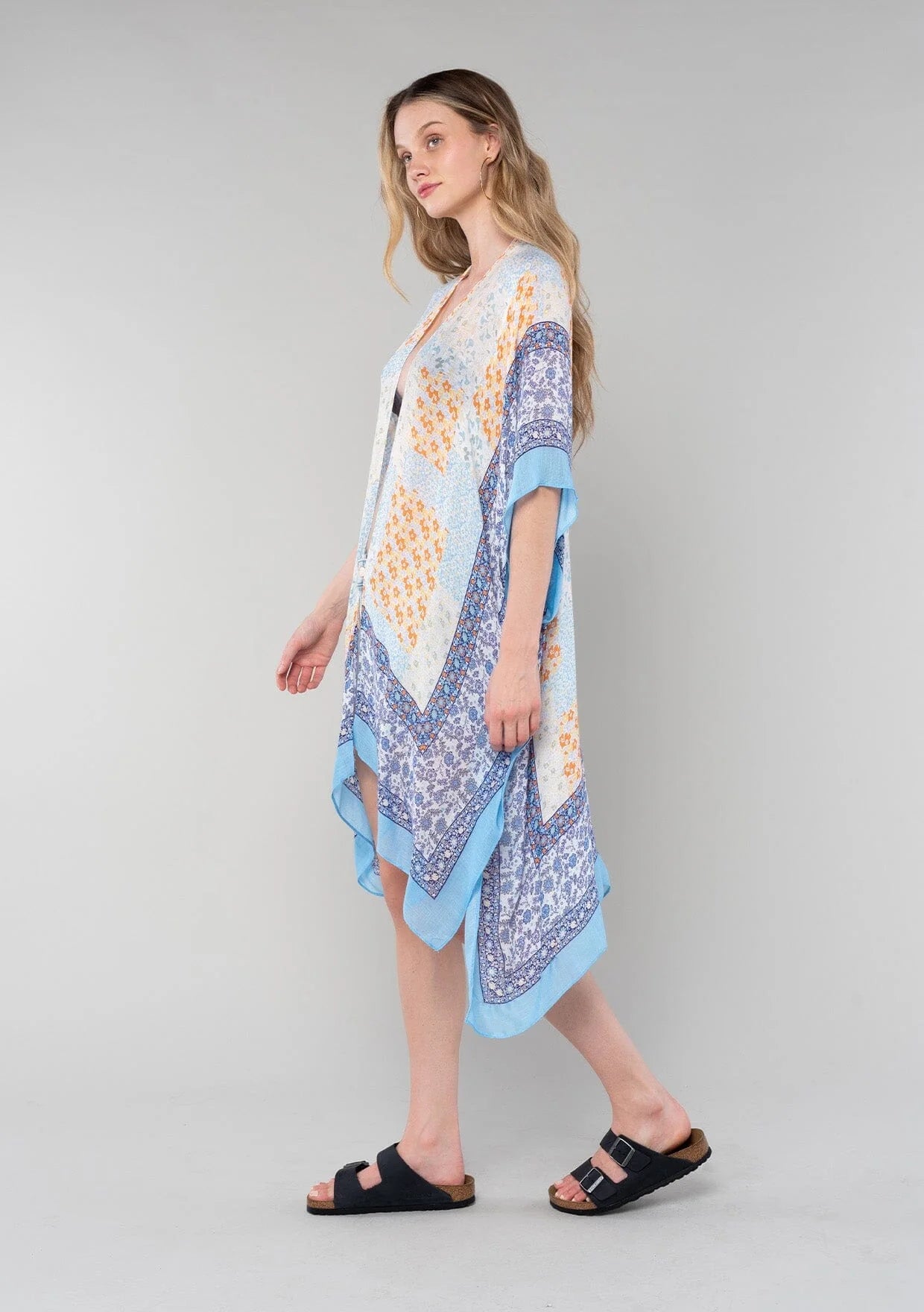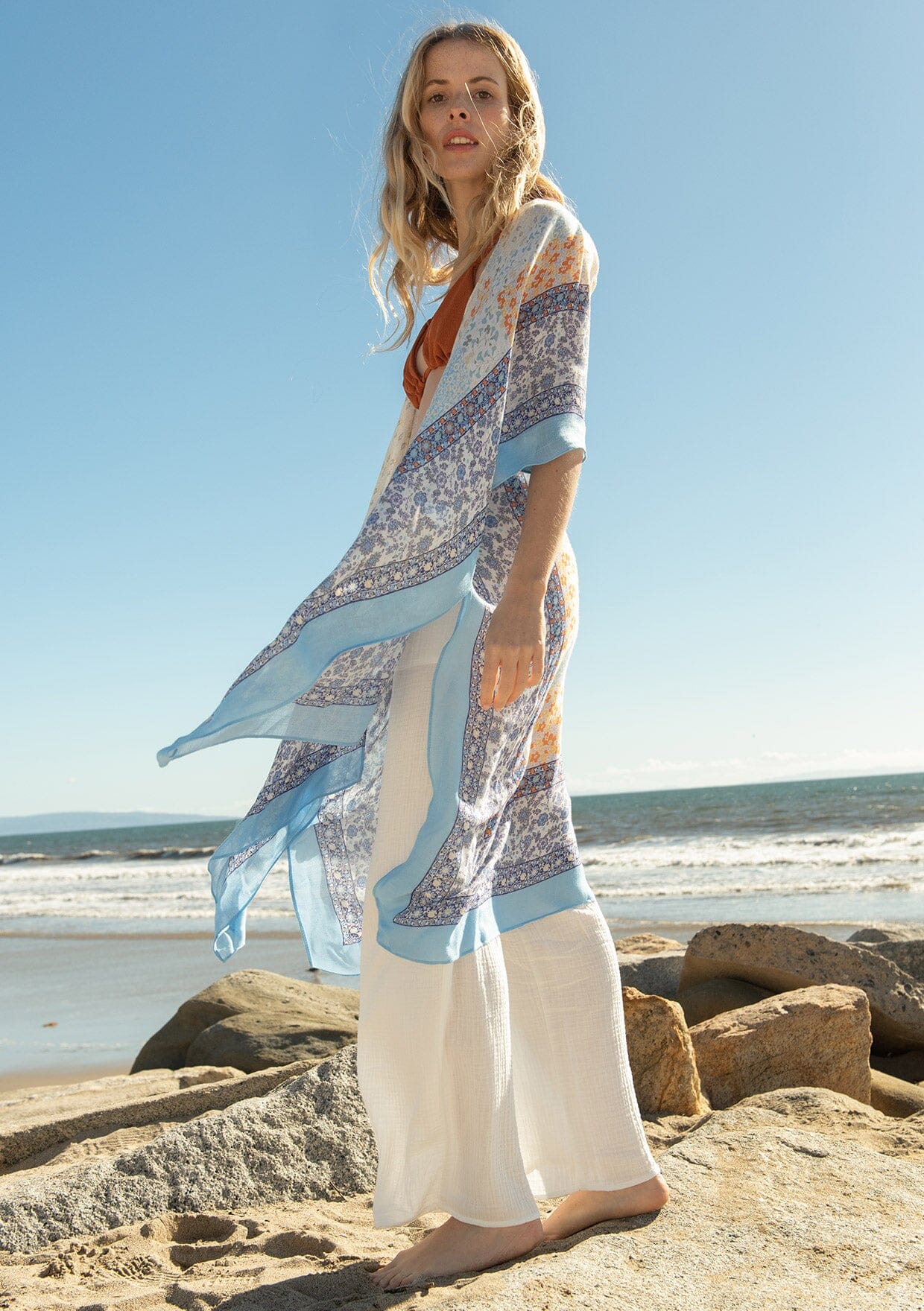A dreamy lightweight kimono in an ivory and blue mixed floral border print. Mixed floral border print Relaxed, oversize fit 1/2... Read more